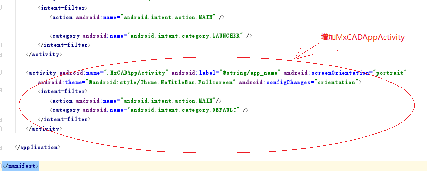 修改AndroidManifest.xml,增加:MxCADAppActivity申明
