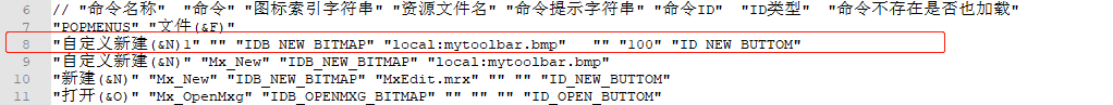 "自定义新建(&N)" "Mx_New" "IDB_NEW_BITMAP" "local:mytoolbar.bmp"
